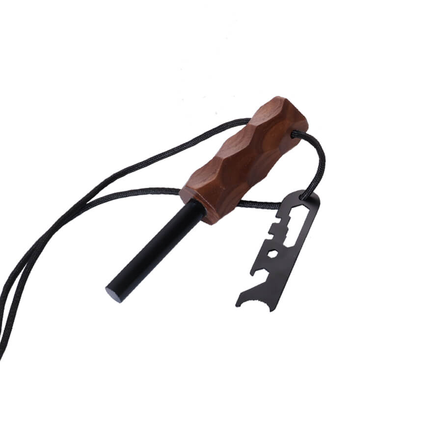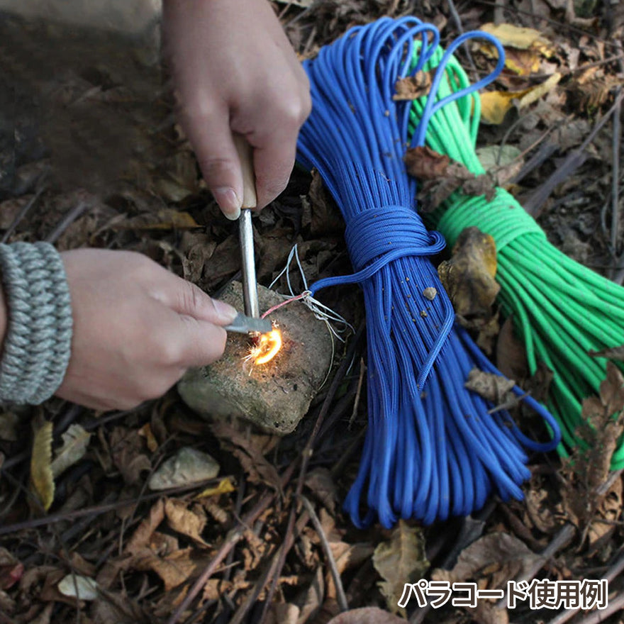 - マグネシウムとフェロセリウムの合金製ロッドと、ステンレス製マルチツールストライカーを使用して簡単に火を起こせます。