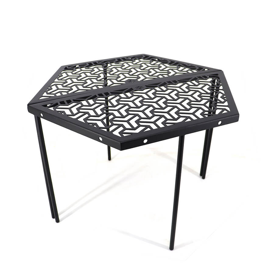 和柄アイアンテーブル2枚セット 毘沙門亀甲柄
